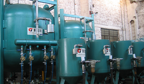 設備采用雙缸體結(jié)構(gòu),由進氣閥、排氣閥、遙控磨料閥及控制系統(tǒng)、操作開關等組成