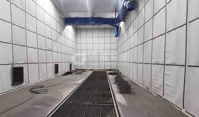 配套噴砂系統(tǒng)、分段回收系統(tǒng)、地坑回收系統(tǒng)、除塵系統(tǒng)、除濕系統(tǒng)、廢氣處理系統(tǒng)、柔性大門及電控系統(tǒng)等